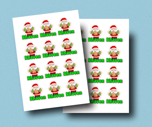Cookie Santa - Personalised Christmas Name Label Stickers